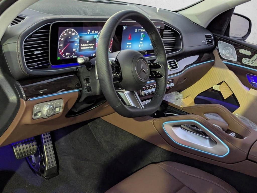 Amg ® Line Exterior,Illuminated Running Boards,Panoramic Roof,Trailer Hitch,Navigation System,3rd Row Seat,5-Zone Climate Control,Heated Steering Wheel,Load Sill Guard,All-Season Front & Rear Floormats,Lane Keeping Assist,Keyless Start,Rear Spoiler,First Aid Kit,Cooled Front Seat(S),Bahia Brown/Black; Mb-Tex Upholstery,Brown Linden Wood Trim,Crystal Grey Headliner,Selenite Grey Metallic,Wheels: 21" Amg ® Twin 5-Spoke Alloy